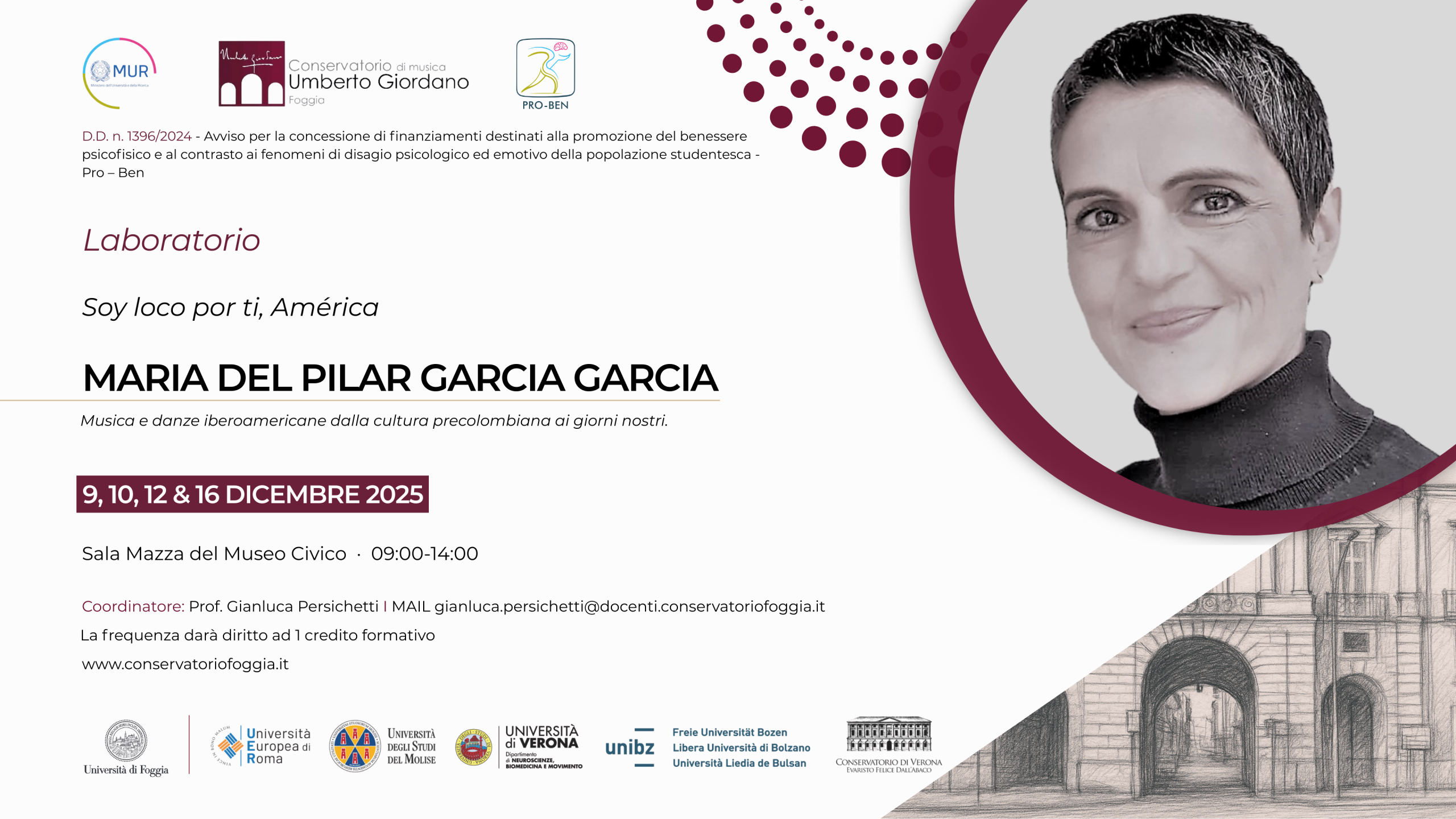 Il Conservatorio di Foggia organizza il laboratorio “Soy loco por ti, América”, dedicato allo studio e alla pratica delle tradizioni musicali e coreutiche dell’area iberoamericana, dalle origini precolombiane alle espressioni moderne.
