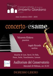 Parte una nuova rassegna di concerti del Conservatorio Umberto Giordano, i Concerti-Esame.